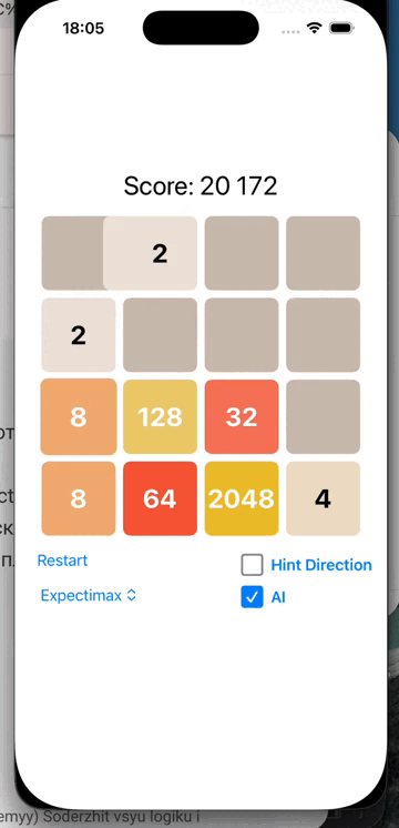 Код игры 2048, написанный на SwiftUI с помощью ChatGPT 4-o находится на Github, я не буду утомлять вас его описание, a код, написанный с помощью ChatGPT 5 — на Github.