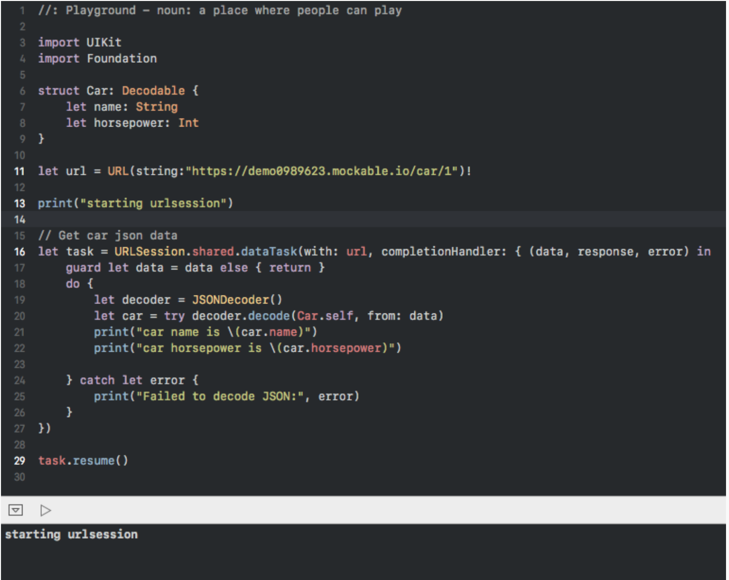 У меня появилась эта ошибка, когда я пытался выполнить некоторый код на Playground и была обнаружена ошибка при выполнении кода.